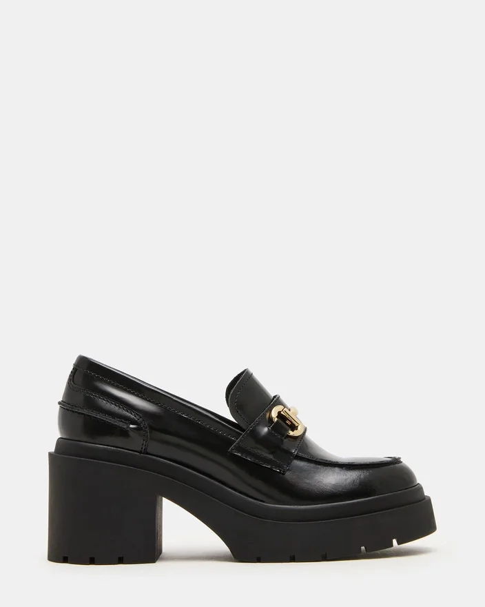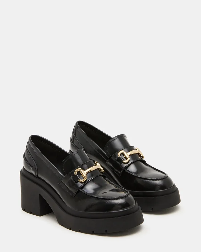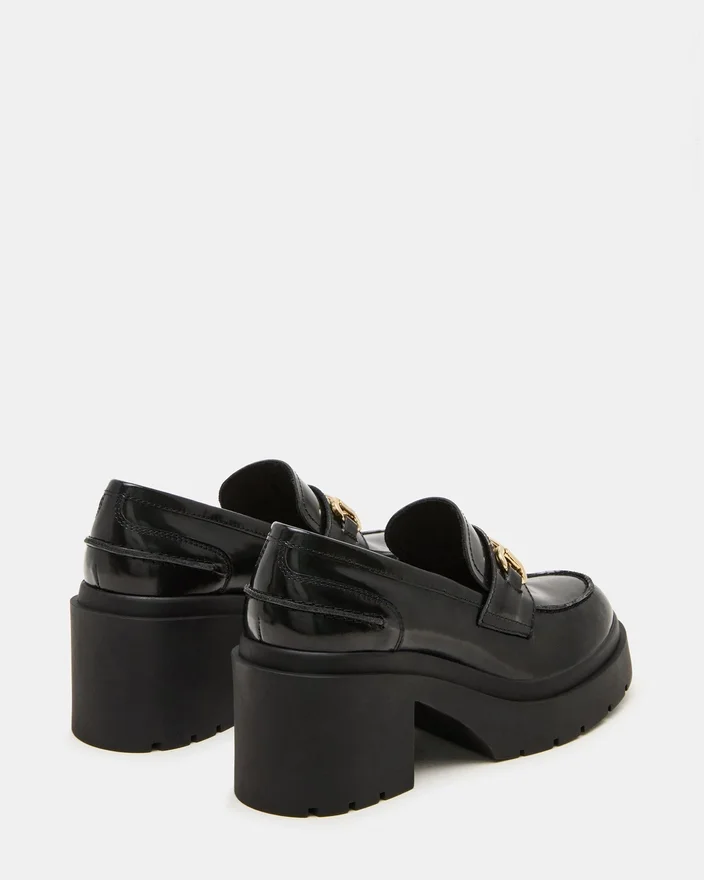 The Lazra Black Loafer Combines Timeless Style with Modern Functionality. Featuring a Lug Platform Sole and a Sturdy Block Heel, This Shoe Offers Enhanced Stability and Traction for All-Day Comfort. Crafted for a Polished Yet Edgy Look, It Elevates Any Outfit While Providing Reliable Support, Making It an Essential Addition to a Refined Wardrobe.