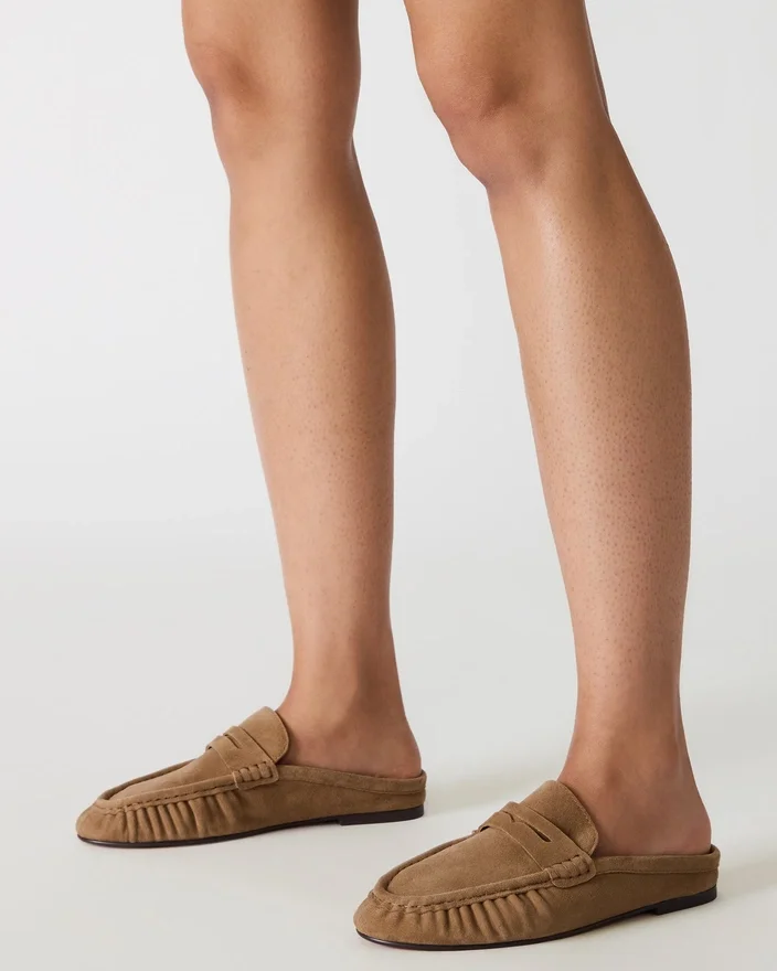 The Rafe Taupe Suede is a Stylish Slip-On Flat Featuring a Rounded Toe for Added Comfort. Crafted with High-Quality Materials, This Shoe Offers Both Fashion and Function for All-Day Wear. Elevate Your Wardrobe with This Versatile and Chic Design.