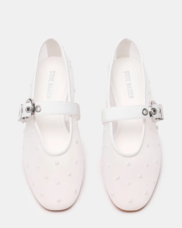 The Lucia Pearl is a Refined Mary Jane Ballet Flat Featuring Breathable Mesh Material That Ensures Comfort and Ventilation. Its Delicate Embellishments Add a Sophisticated Touch, Perfect for Elevating Both Casual and Formal Outfits. Designed with an Expert Balance of Style and Practicality, This Flat Offers Secure Fit and Graceful Silhouette for Everyday Elegance.