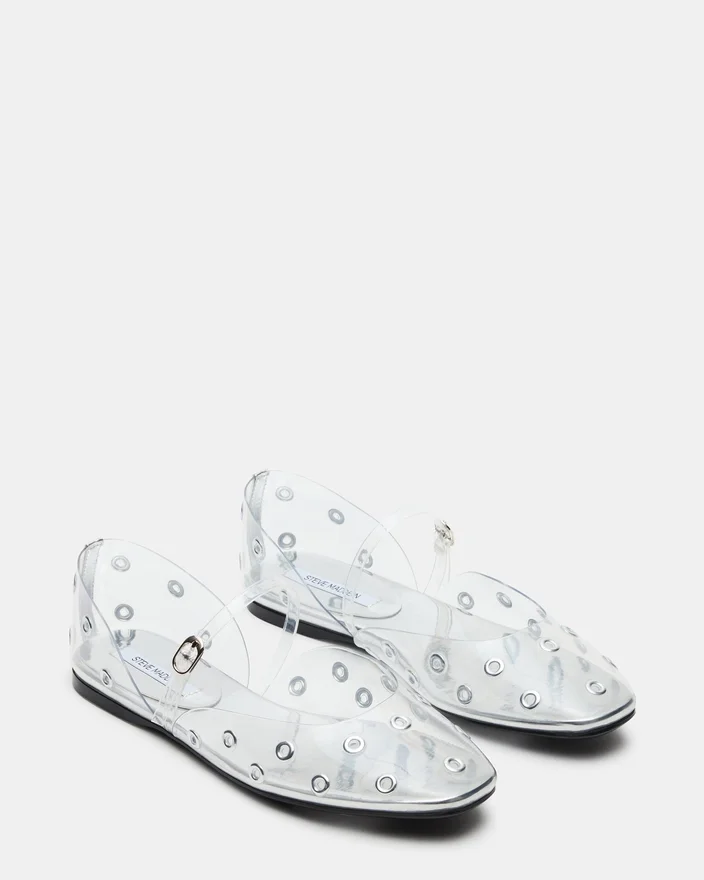 The Luneth Clear Mary Jane Ballet Flat Showcases Refined Craftsmanship with Its Signature Eyelet Detailing. This Classic Silhouette Features a Secure Mary Jane Strap That Provides Adjustable Support and a Graceful Fit. The Ballet Flat Construction Offers All-Day Comfort While Maintaining an Elegant, Understated Aesthetic. Ideal for Those Who Appreciate Timeless Footwear Design, This Style Effortlessly Bridges Casual and Polished Occasions with Its Versatile Appeal and Sophisticated Construction.