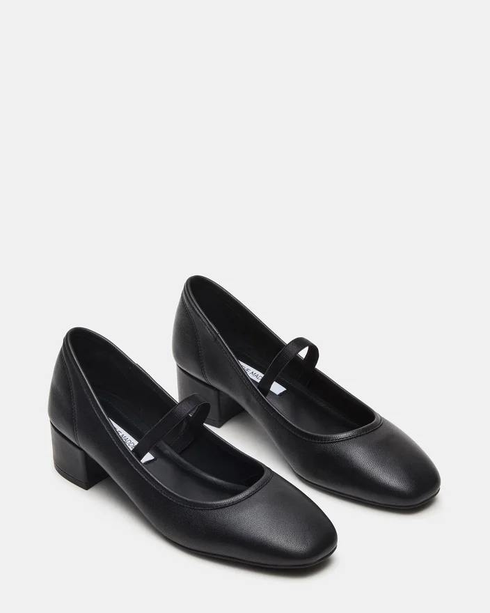 The Mural Black Leather Combines Timeless Mary Jane Styling with Contemporary Design. This Square-Toe Silhouette Features a Sturdy Block Heel That Delivers All-Day Comfort and Stability, While the Classic Mary Jane Strap Adds a Refined Touch. Crafted with Premium Materials, This Heel Transitions Seamlessly from Professional Settings to Weekend Outings.