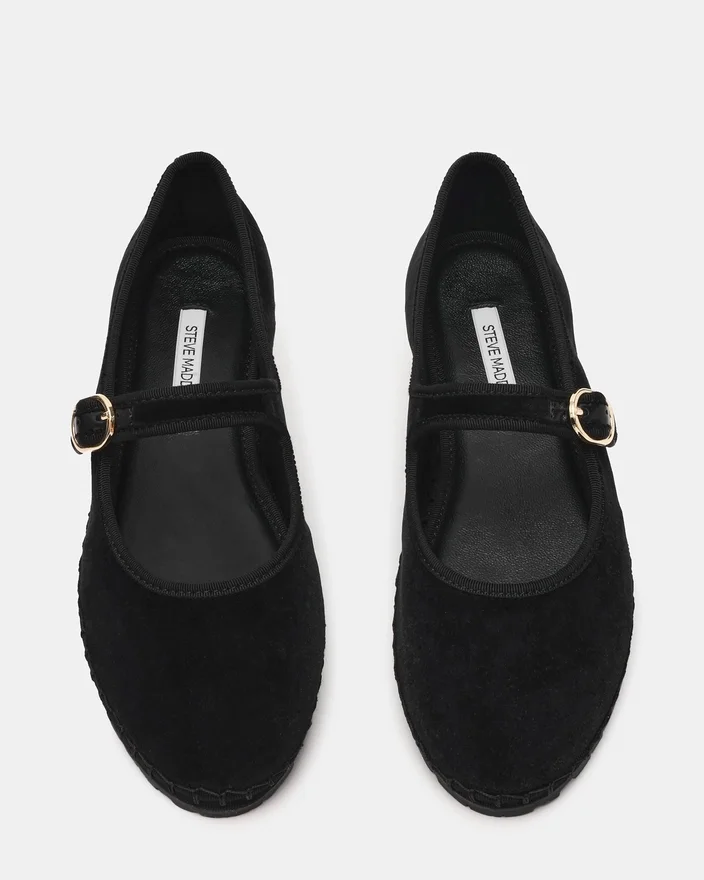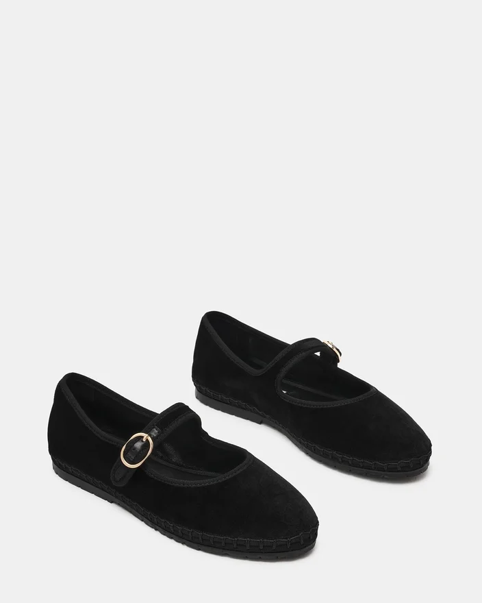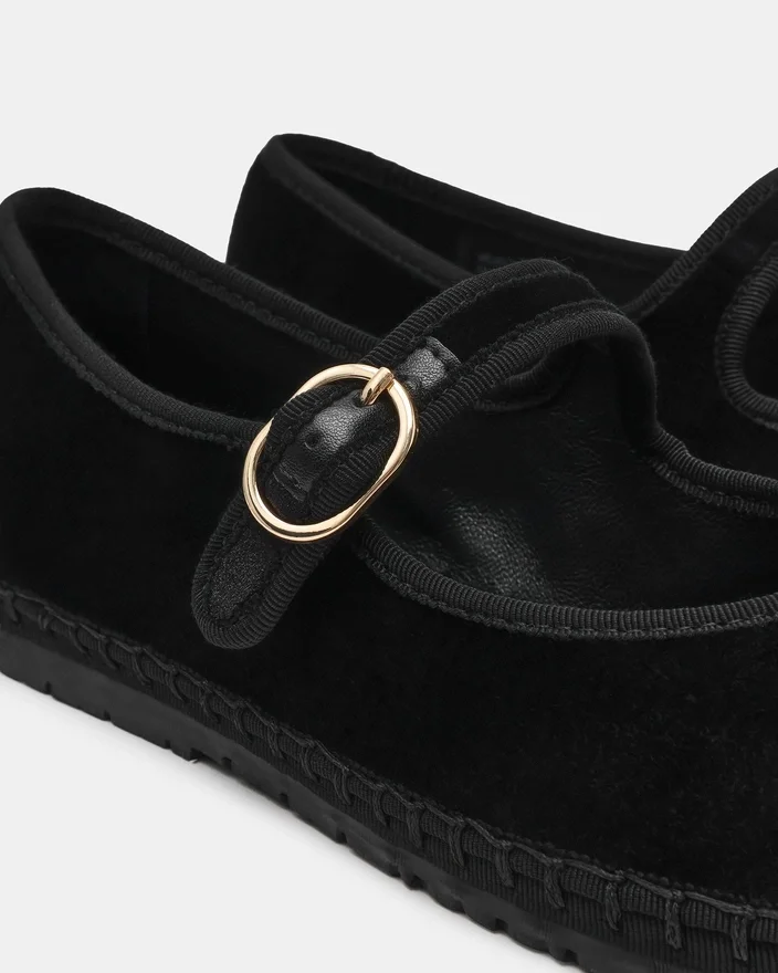The Velma Black Velvet Features Timeless Mary Jane Silhouette Elevated with a Secure Buckle Closure. This Flat Delivers Refined Comfort for All-Day Wear, Featuring a Rounded Toe and Classic Strap Design That Pairs Effortlessly with Any Wardrobe. The Buckle Detail Adds a Touch of Sophistication While Ensuring a Customizable Fit. Perfect for Those Seeking a Versatile, Polished Shoe.