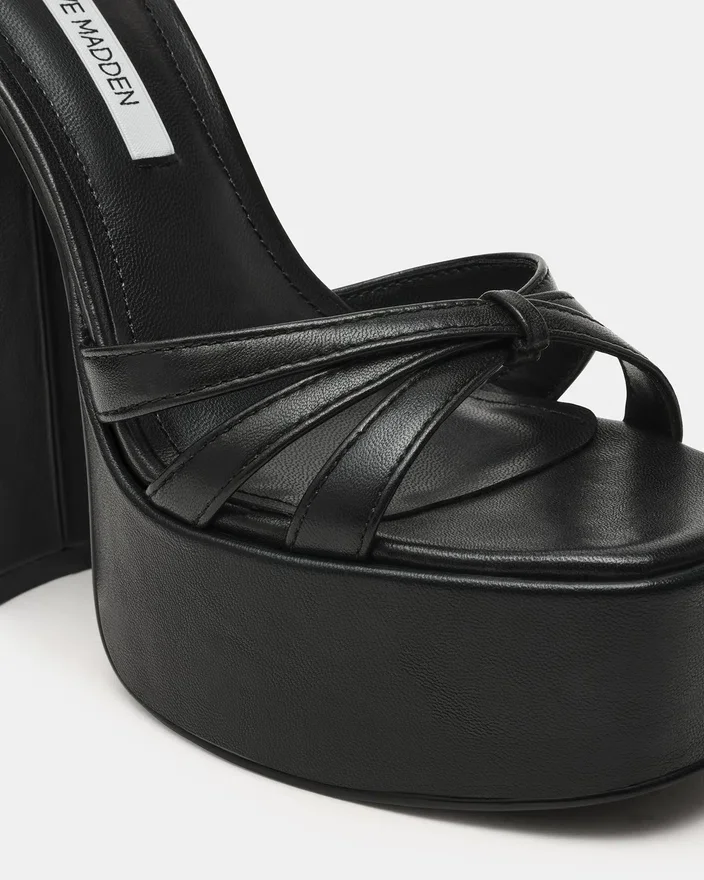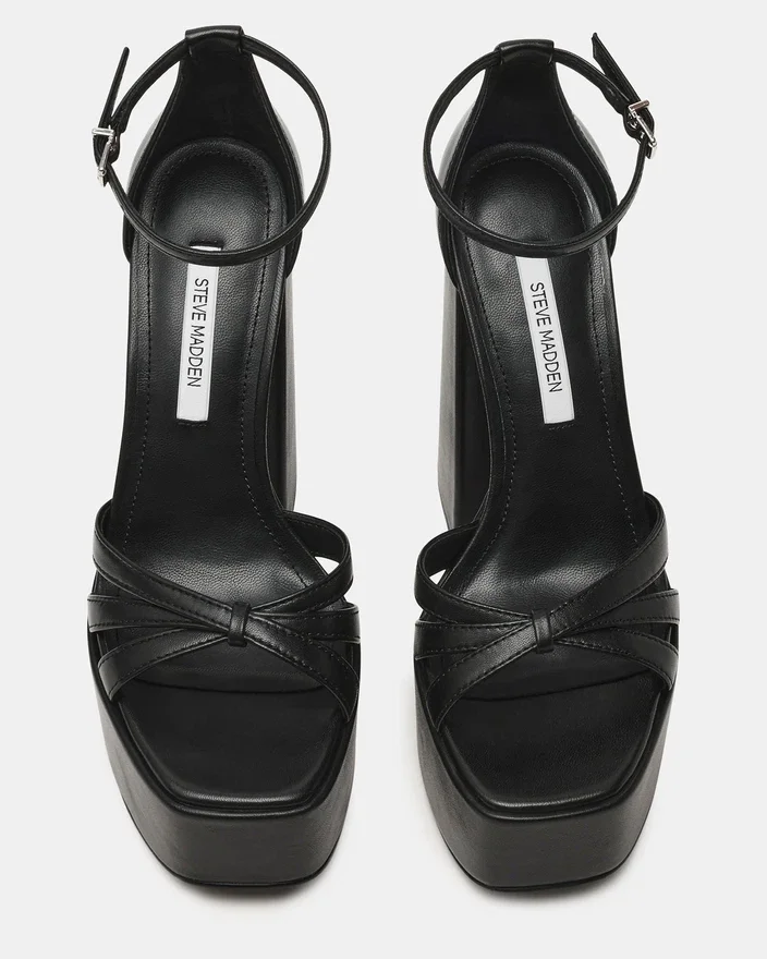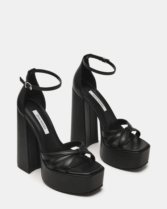 The Retro Black Leather Showcases a Classic Platform Design Paired with a Block Heel for Enhanced Balance and Comfort. Its Open Toe Offers Breathability and Style, While the Adjustable Ankle Strap Ensures a Secure Fit. This Combination Delivers Both Elevated Height and Lasting Support, Making It the Perfect Heel for Those Seeking a Refined Look.