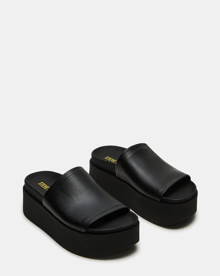The Arwen Slide Sandal Features a Platform Flatform Design and Rounded Toe for a Trendy Yet Comfortable Look. With a Chunky Footbed, This Sandal Offers Both Style and Support. Elevate Any Outfit with These Versatile and Chic Sandals.