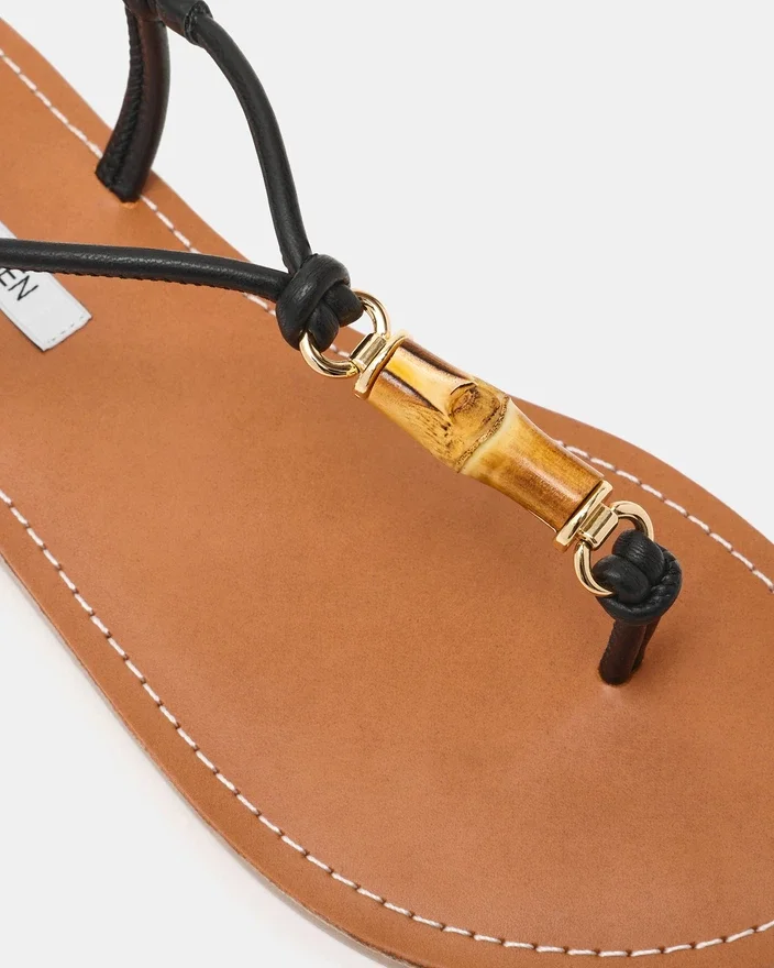 The Kingsly Black Thong Sandal Combines Contemporary Style with Thoughtful Design Details. Featuring Distinctive Knot Detailing at the Vamp, This Sandal Delivers a Refined Aesthetic That Sets It Apart from Traditional Styles. The Thong Construction Offers a Secure, Comfortable Fit, While the Unique Design Elements Add Visual Interest to Any Warm-Weather Wardrobe. Perfect for Those Seeking Footwear That Balances Everyday Wearability with Modern Sophistication.