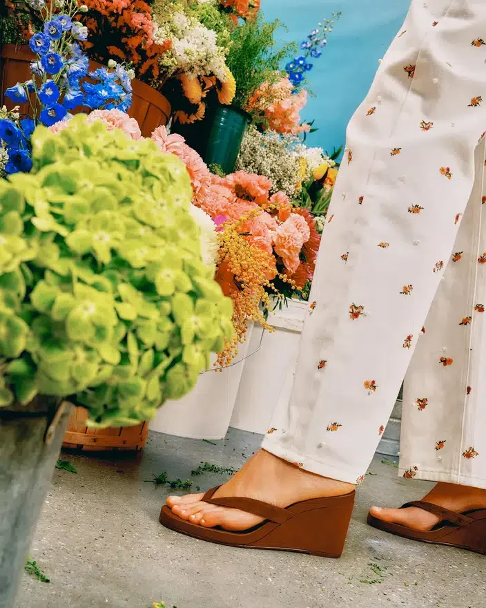 Elevate Your Summer Wardrobe with the Playing Wedge Sandal. Featuring a Sleek Thong Design and a Comfortable Rounded Toe, This Mule-Style Sandal Offers Both Style and Ease. The Wedge Provides Subtle Lift and Stability, Making It Perfect for All-Day Wear. This Sandal Combines Sophistication with Versatility for Effortless Pairing with Casual or Dressy Outfits.