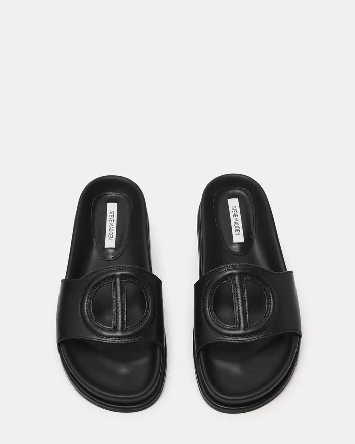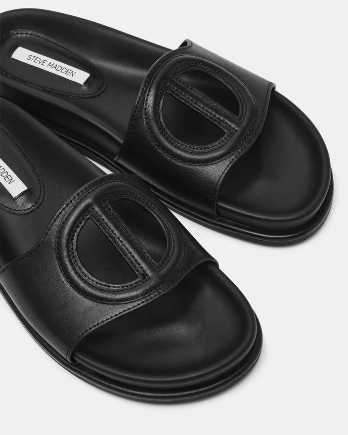 The Zosia Black Leather Sandal Combines Effortless Style with Thoughtful Construction. This Slide Features a Striking Cutout Design That Adds Visual Interest While Maintaining a Sleek Silhouette. The Footbed Provides All-Day Comfort, Making It Equally Suited for Casual Outings or Relaxed Evenings at Home.