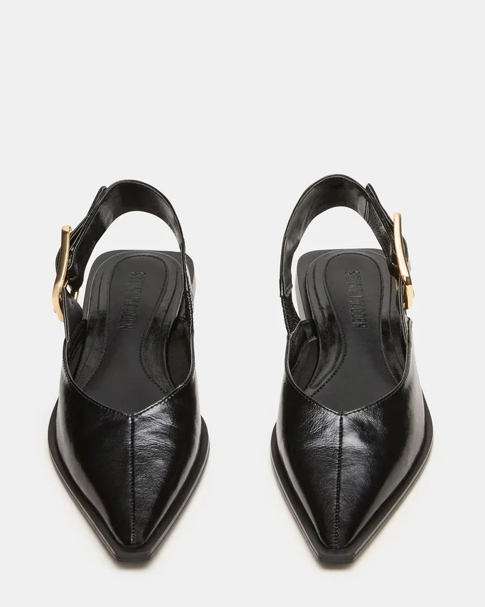 The Shay Black Leather is a Pointed-Toe Slingback Ballet Flat That Combines Refined Style with Comfort. Crafted from Quality Materials, It Offers a Sleek Silhouette Perfect for Both Professional and Casual Settings. The Slingback Design Ensures a Secure Fit While Maintaining Breathability, Making It an Ideal Choice for All-Day Wear. This Flat Balances Elegance and Practicality, Enhancing Your Wardrobe with a Versatile, Expert-Approved Footwear Option.