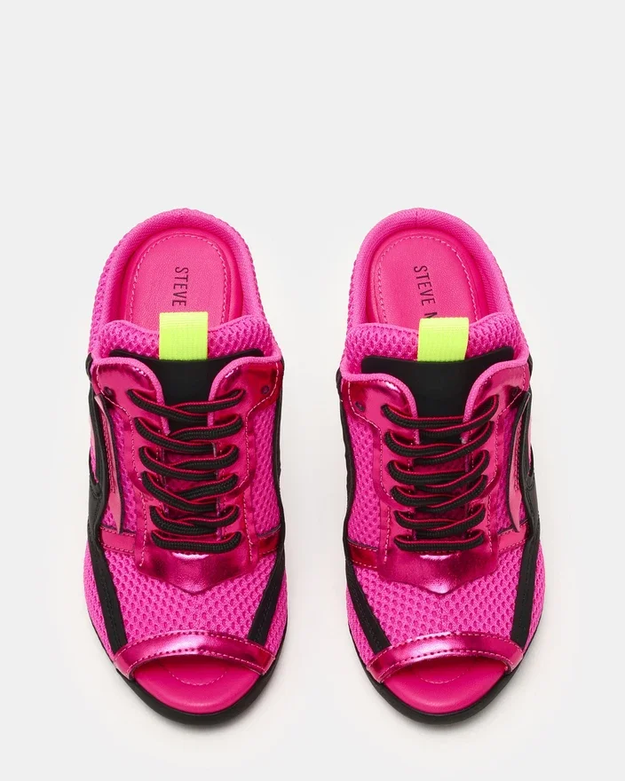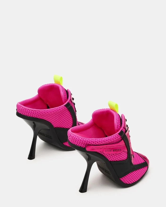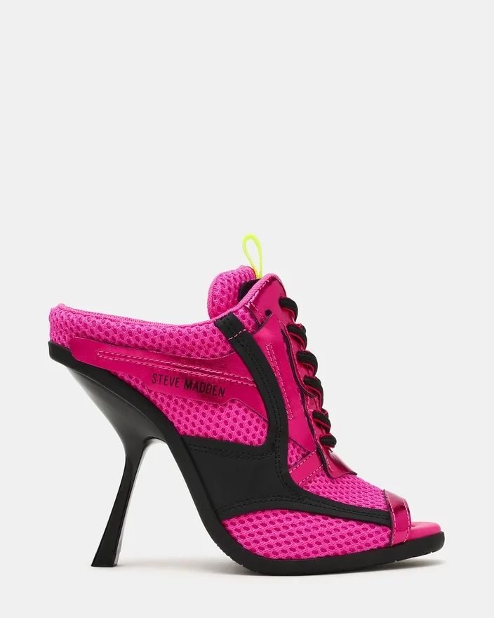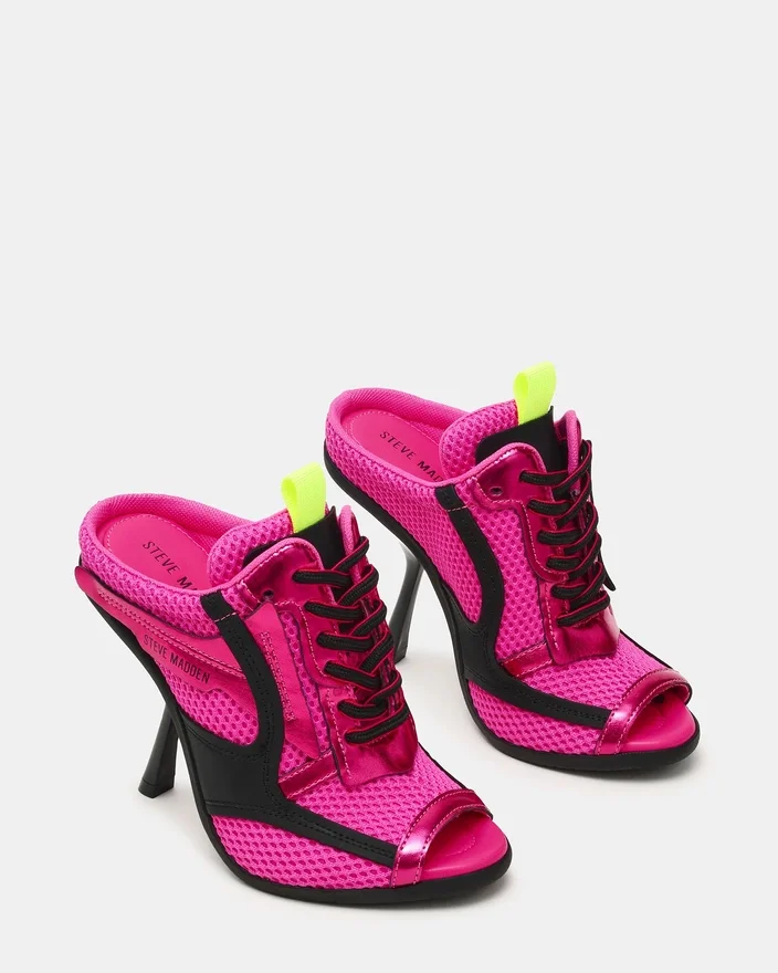 Step into Bold Style with the Chevelle Pink Multi Sneaker Heel. This Eye-Catching Lace-Up Design Combines Sporty Mesh Material with an Unexpected Peep-Toe Silhouette, Creating a Fresh Fusion of Casual and Chic. Perfect for Those Who Want to Make a Statement While Staying Comfortable, This Versatile Shoe Transitions Effortlessly from Day to Night.