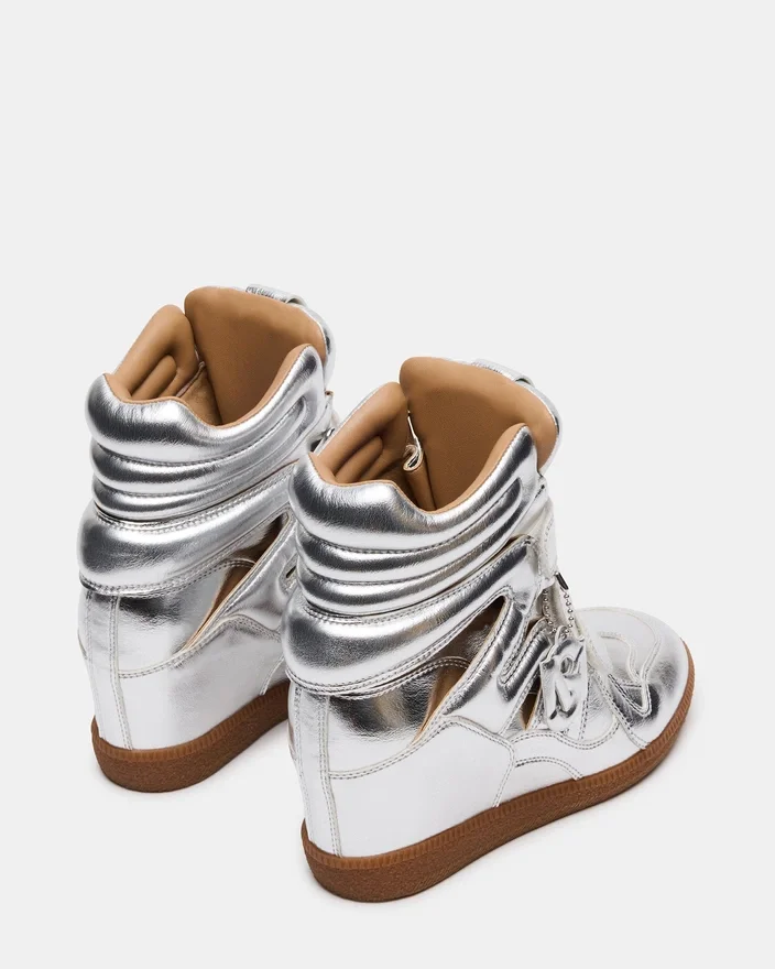 The Mavis Silver High-Top Sneaker Combines Classic Style with Modern Convenience. Crafted from Premium Materials, It Offers Durability and a Refined Look. The Velcro Closure Ensures a Secure Fit and Easy On-And-Off Wear, Making It Ideal for Those Seeking Both Comfort and Functionality. Perfect for Elevating Casual Outfits with a Sleek, Expert Touch.