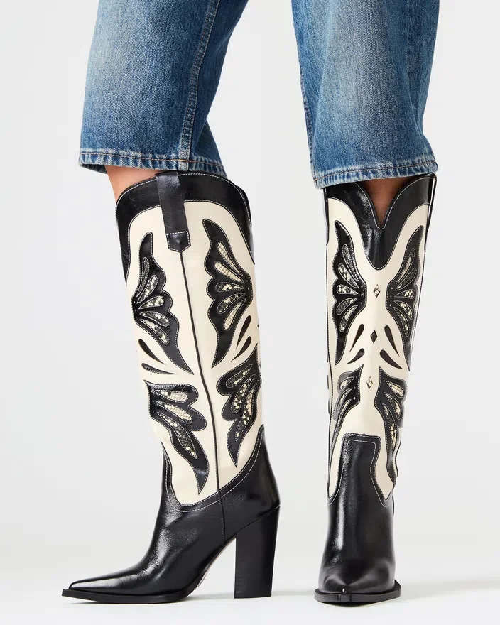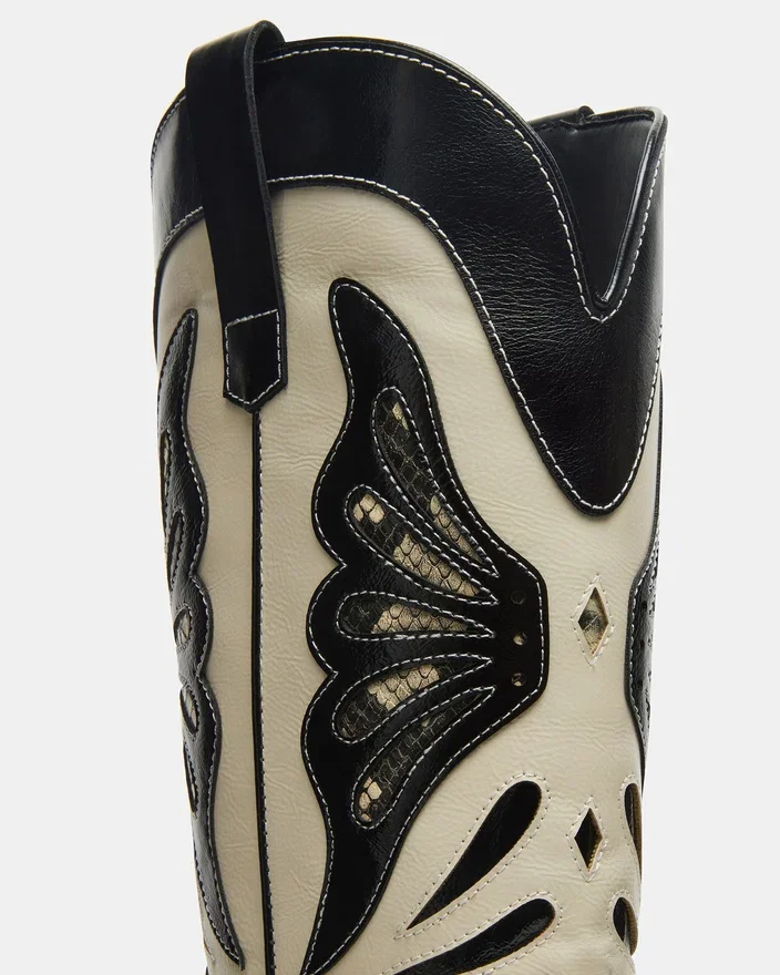 Step into the Bold Kaz, a Sophisticated Pointed-Toe Western Boot Featuring a Stable Block Heel for All-Day Comfort. The Striking, Unique Colorway Offers Versatile Styling Options While Maintaining Authentic Western Design Elements. Expertly Crafted to Provide Both Statement Style and Practical Wearability.