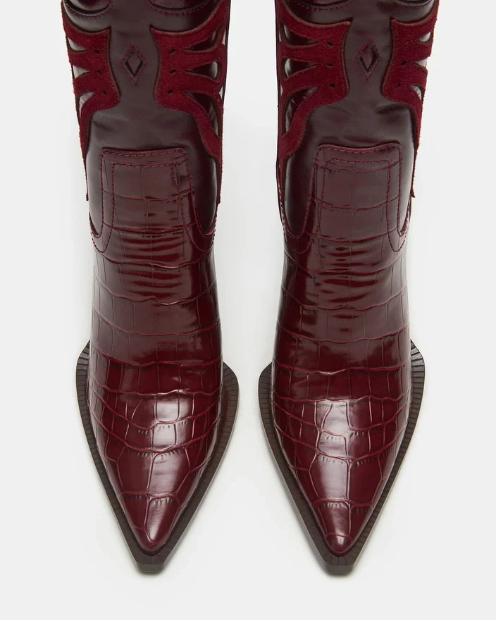 Step into the Bold Kaz, a Sophisticated Pointed-Toe Western Boot Featuring a Stable Block Heel for All-Day Comfort. The Striking, Unique Colorway Offers Versatile Styling Options While Maintaining Authentic Western Design Elements. Expertly Crafted to Provide Both Statement Style and Practical Wearability.